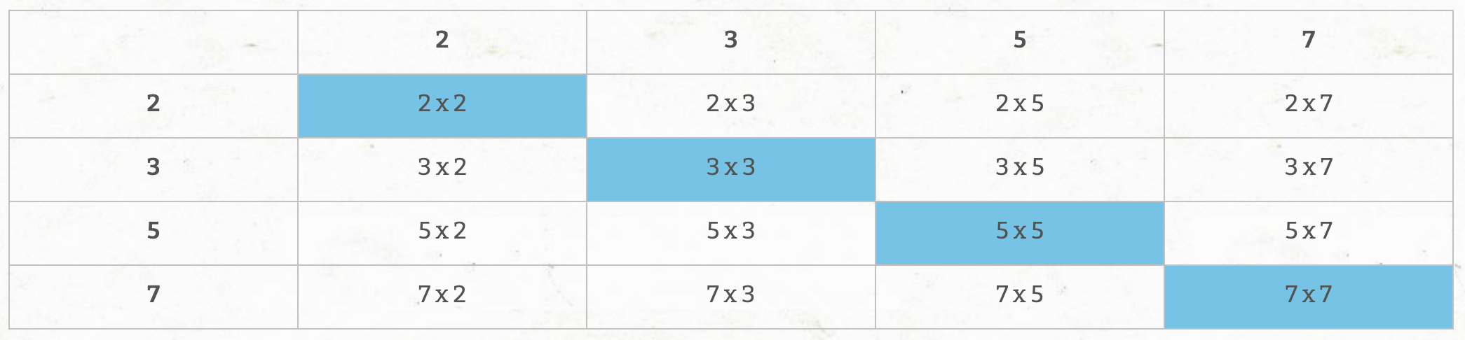 2x3, 2x5, 2x7이 있다면 추후 3x2, 5x2, 7x2로 나올 수 있기에 자기자신의 리터레이션에서 나누어 떨어질때 까지만 곱셈 연산을한다. 소수이기때문에 자기자신으로만 나누어떨어 질 수 있다.
